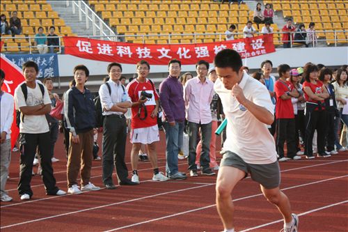 运动场上,运动员精神抖擞,充分发挥实力,面对对手勇于挑战、永不言败、不抛弃不放弃,坚持到最后。运动场上不仅运动员们精神百倍,而且啦啦队的同学也毫不逊色,他们大声呐喊加油助威,同时服务站的同学也及时送温暖、送鼓励、送关怀。