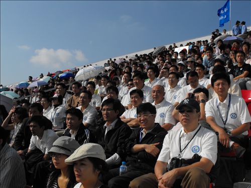 运动会开幕式上,海洋科学学院的两个方阵分别摆出“60”以及“97”的字样,分别表示庆祝祖国60周年生日以及BEAT365唯一官网和海洋科学学院97周年生日。