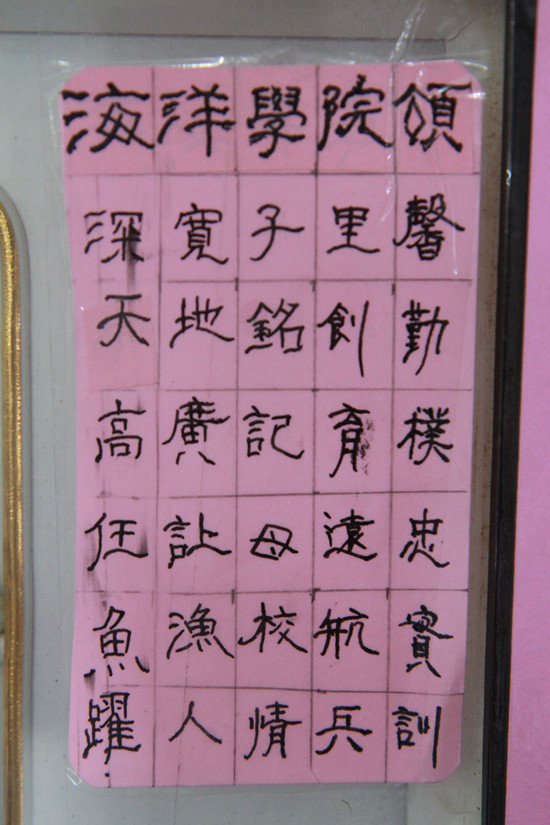 值此母校101周年华诞之际,蔡老师和夫人特制了一个工艺品,赠予母校留作纪念,并亲自以“海洋学院颂”为首字题诗一首,字里行间无不流露出一位毕业学子对学院工作的高度赞扬与殷切希望。