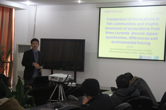 2013年12月26日,日本水产综合研究中心日本海区水产研究所研究员、我校客座教授田永军博士应邀访问我校,并为我校相关专业教师和研究生作了“日本周围三大海流生态系比较研究”的学术报告。国家远洋渔业工程技术研究中心副主任、海洋科学学院朱清澄教授主持了此次学术系列活动。