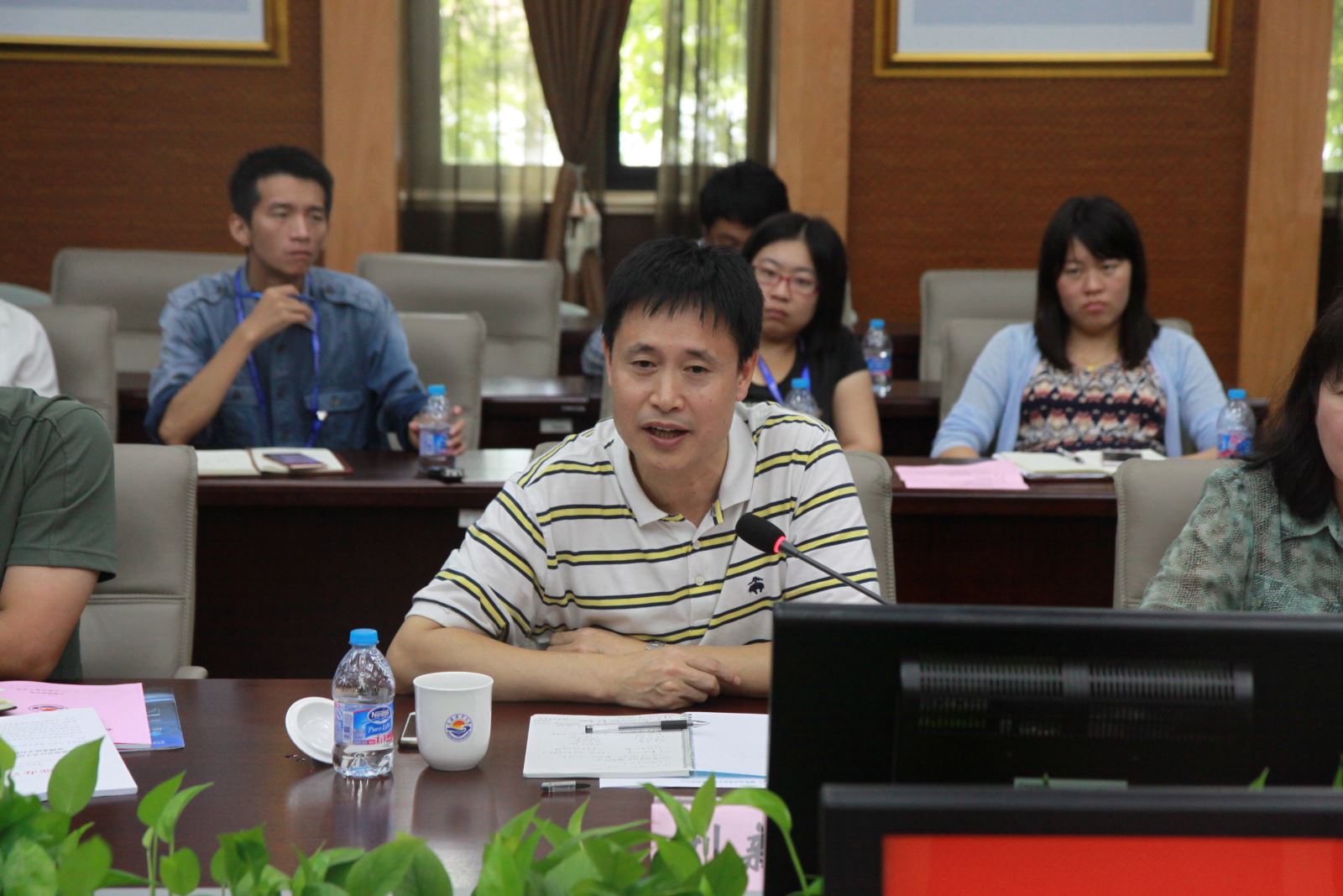 李家乐副校长首先致欢迎辞,对刘新中副局长一行来校调研和指导表示热烈欢迎,并简要介绍了学校发展近况。围绕调研具体内容,海洋科学学院院长陈新军教授围绕着“学校参与远洋渔业历史”、““十二五”期间主要成绩”两个方面介绍了目前所做的工作和取得的成果,并从认知能力、掌控能力、开发能力、育人能力等四个方面介绍了学校未来发展的目标和任务,同时提出了在平台建设、国际履约能力提升、科学研究和成果推广以及培训实践等方面需要部局支持的政策与工作。田思泉副教授以“增强国际履约能力的建议”为主题,和与会专家领导分享NPFC工作经历,介绍了国际组织谈判流程,并指出我们渔业科技人员参与国际组织,有助于我国远洋渔业掌控能力和获得更多国际话语权。随后,双方进行了深入交流与讨论。