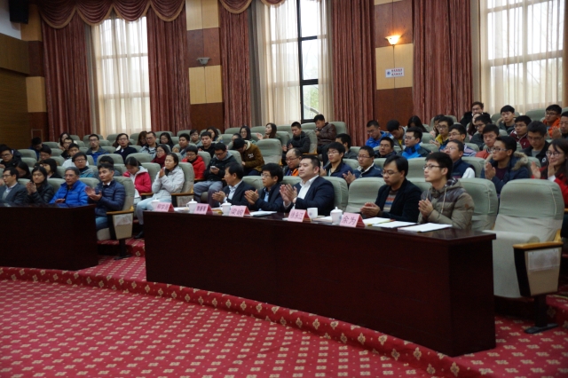 李家乐副校长代表我校致欢迎词。他指出,获得“全国优秀科技工作者”奖的我校陈新军教授、黄海水产研究所柳学周研究员、獐子岛集团梁峻副总裁分别在远洋鱿钓、鱼类繁殖及增养殖以及水产行业良种扩繁、生态养殖方面取得了一大批重要科研成果,大力推动了我国水产科技事业的发展,三位同志是广大水产科技工作者中杰出的代表。他还号召,广大水产科技工作者要以“全国优秀科技工作者”为榜样,充分发挥自身优势,勇于创新,服务社会,为我国的水产科技事业发展贡献智慧和力量,不断推动我国水产事业再上新台阶。