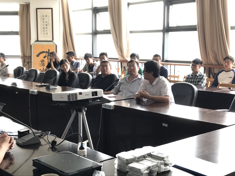 出席本次活动的有江苏中海达海洋信息公司的市场总监陈聪、中海达上海分公司总经理方兴,海洋科学学院副院长胡松、海洋科学与技术系主任韩震、副主任沈蔚以及海洋学院相关老师和2014级海洋技术海洋测绘方向同学。
