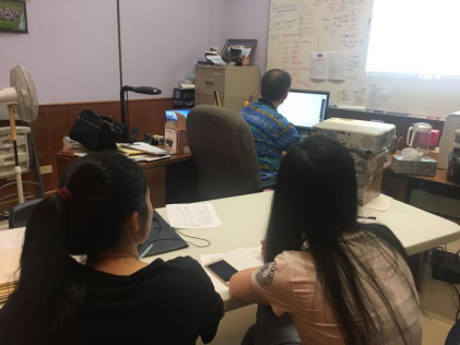 研究生何珊(左图左一)、樊宇薇(右图)在WCPFC秘书处学习