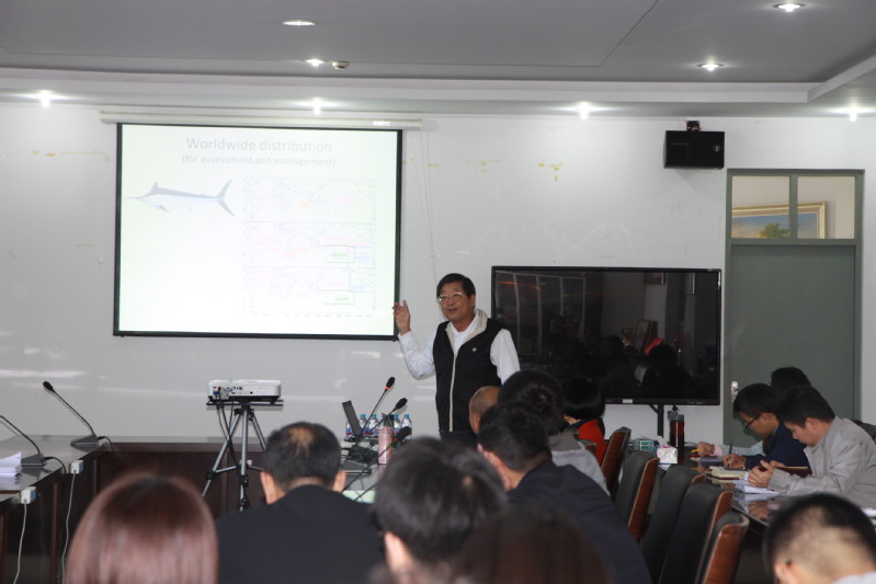 教授首先从旗鱼的种类讲起,分析了剑旗鱼、红肉旗鱼、雨伞旗鱼的产量和资源情况。接着,孙教授还给在坐的老师和学生们介绍了台湾渔业的概况和发展趋势。孙教授强调,“维护海洋的多样性,是作为地球生物圈一份子所应尽的义务,号召大家积极为维护海洋的多样性努力工作”。孙教授究其一生研究旗鱼,尽心尽力的培养学生,把很多优秀的学生带到国际渔业组织中去锻炼,为我校培养一流学生创造了条件。