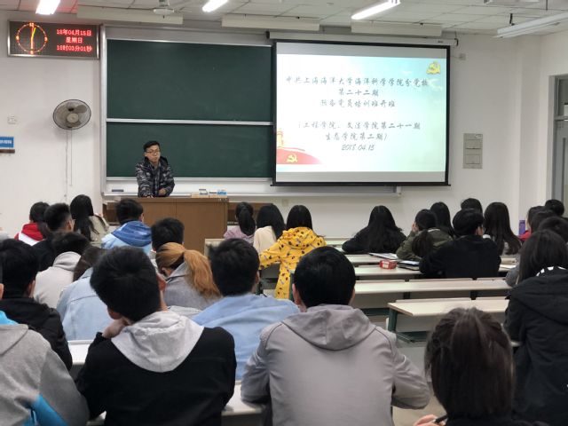 4月15日晚上6:00,中共BEAT365唯一官网海洋科学学院分党校第二十二期暨工程学院、文法学院第二十一期、生态学院第二期预备党员培训班于一教1105教室正式开班,开班仪式由海洋科学学院专职组织员、宣传员刘丙宝主持。