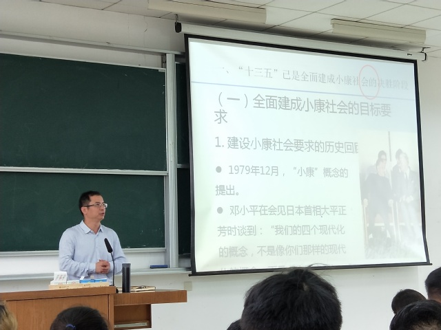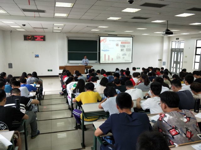 江书记从“十二”大初次确立的“小康社会”谈起,深入浅出地为学生们讲解了自十五届三中全会以来全面建成小康社会的目标要求以及我国主要社会矛盾在不同时期的具体变化。讲座中,他要求学生们树立“问题导向”的意识,积极思考社会发展中所存在的“不平衡”、“可持续”等问题。在讲到海洋强国时,他说:“当前,中国经济已发展成为高度依赖海洋的外向型经济,对海洋资源、空间的依赖程度大幅提高,在管辖海域外的海洋权益也需要不断加以维护和拓展,这些都需要通过建设海洋强国加以保障。对于海洋科技方面,国家也将着力提升海洋科技自主创新能力,跟踪和探索海洋领域重大科学问题,提高勘探开发海洋资源等技术来加快建设海洋强国”。