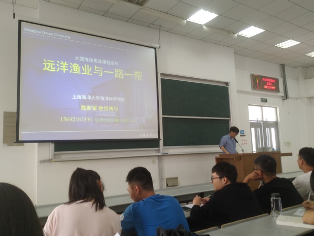 6月5日下午,海洋学院院长陈新军教授为海洋科学学院2016级全体学生做了题为“远洋渔业与一带一路”的形势政策报告。