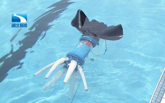 湖北新闻作了专题采访,并在报道中提到这件作品“功能强大、新颖别致”,十分肯定“机器鱿鱼”模仿鱿鱼在水中的运动方式,用尾鳍的摇摆控制航行方向,用触足的伸张运动推助前进,认为“机器鱿鱼”功耗是其它传统航行器的十分之一,耗能小、噪音低,利用这个特点可以近距离引导鱼群,进行渔业资源的监测,甚至在许多军事领域发挥作用。
