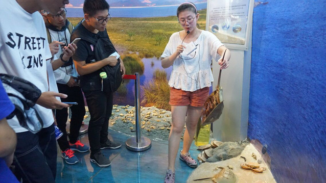 讲解员细心讲解展品,为大家讲述我校水生生物馆的特色标本