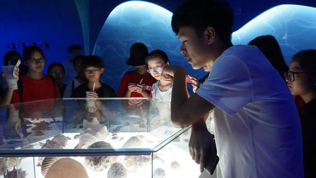 自第一次品读活动中观览潮海路七道门之后,第二次品读活动于图书馆水生生物馆开展。带着对海大悠久历史的敬畏之心,和对海洋科学知识的好奇向往之情,18级全体新生在讲解员的清晰介绍下有序观览了馆内各项展品,在与讲解员的热心问答互动中收获了丰富的海洋知识见闻。