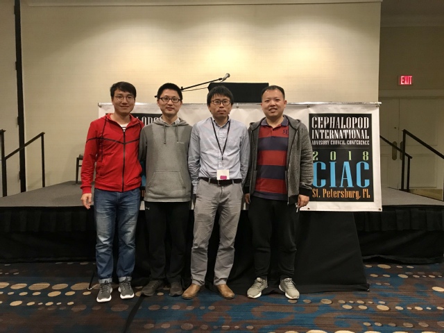 为促进世界头足类的科学研究,头足类国际咨询委员会(Cephalopod International Advisory Council, CIAC)于2018年11月10-16日在美国佛罗里达州圣彼得斯堡(St. Petersburg, Florida)召开了三年一次的2018年度世界头足类大会。来自全球28个国家和地区的200余位头足类研究者,共聚一起就世界头足类研究的前沿和热点进行了探讨和交流。应头足类国际咨询委员会(CIAC)邀请,海洋科学学院老师刘必林、余为、方舟和博士研究生胡贯宇等4人一行参加了本次大会。