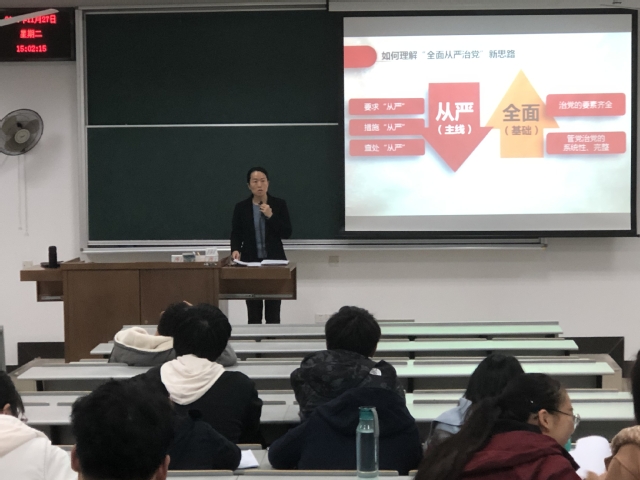 11月27日下午3点,在教学楼3206教室,海洋科学学院王曜副书记以“新形势下:‘全面从严治党’的新思路”为题,为入党积极分子们上了精彩一课。此次入党积极分子培训班由海洋科学学院与海洋生态与环境学院共同主办,60余名入党积极分子们参与了此次党课的学习。