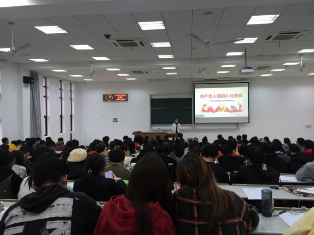 在讲座中,王曜老师分别从“走进共产党人的初心”、“四个伟大”、“中国共产党最有理由自信”、“从严治党,开创未来”四个方面阐述了共产党人的初心。从十月革命到中国共产党成立再到改革开放,共产党人的初心从未改变。通过王曜老师生动而又充满激情的讲解,同学们对于“不忘初心”有了更加深入的理解,同时也为自己身为一个中国人感到无比的骄傲与自豪。