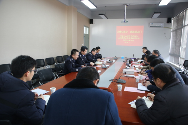 1月17日下午13:30,海洋科学学院与洋山出入境边防检查站共建活动在海洋科学学院A351会议室顺利举行。洋山出入境边防检查站副站长王志斌一行、海洋科学院领导班子成员、船舶管理中心和“淞航号”负责人共同参与了此次共建活动,活动由海洋科学学院副院长沙锋主持。