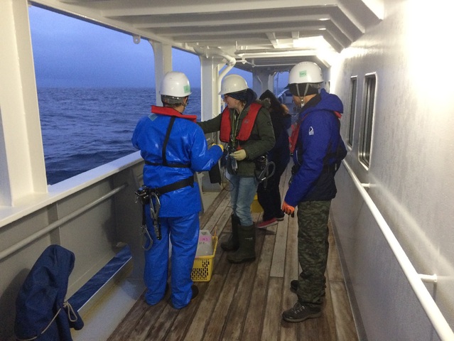 图6硕士研究生在Tangaroa号上采集南极磷虾样本