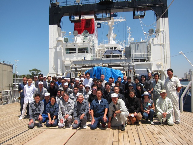 图5硕士研究生周梦潇(后排右二)与Tangaroa号科研人员合影