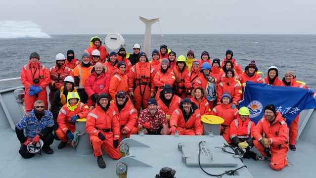 图1朱国平(前排右八)参加中国第三十五次南极科学考察队赴罗斯海和阿蒙森海调查
