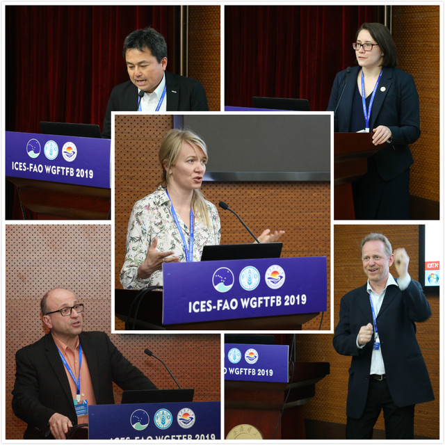 8号,国际海洋开发委员会和联合国粮农组织捕捞技术和鱼类行为工作组2019年(ICES-FAO-WGFTFB 2019)主题会议第一—四次会议在图文信心中心102会议室举行。FAO官员及国外专家、国内相关单位专家、校内外师生参与了会议。第一—四次主题会议分别由Raymon van Anrooy、Pingguo He、Noelle Yochum、Noelle Yochum主持。