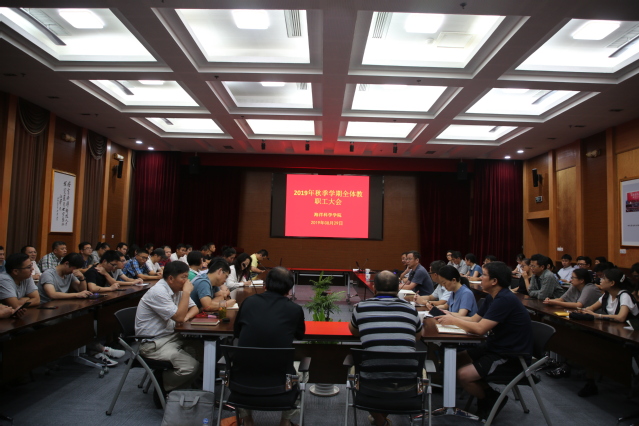 为进一步做好新学期的各项工作,布置好“不忘初心、牢记使命”相关主题教育活动,8月29日下午1点半,海洋科学学院在图文102会议室组织召开了新学期全院教职工大会。会议由学院党委书记江卫平主持,国际交流处钟俊生处长、学院领导班子成员和学院全体教职工参加了此次会议。