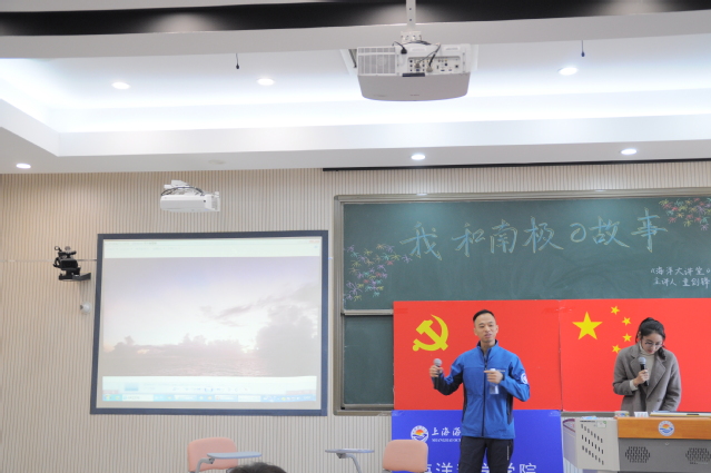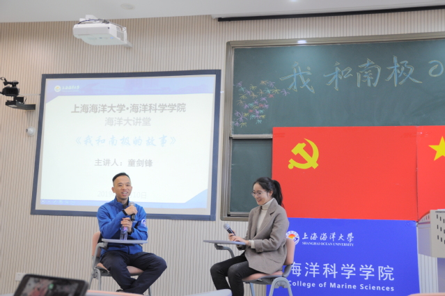 接下来,童剑锋老师向同学们分享了自己在雪龙号上研究磷虾的科考经历。他结合在科研船上拍摄的照片,向同学们讲述了自己在雪龙号上的有趣经历,使同学们进一步认识了“雪龙号”,也鼓舞了大家的科研热情。在互动过程中,同学们积极热情地对童剑锋老师提问交流,从求知问学到科研创新,从求学初心到人生选择。对同学们的提问,童老师都一一耐心解答,并鼓励同学们敏锐观察当下充满机遇的环境,不断提升自我并努力抓住机会,作为一名新时代的海大学子为深入海洋研究贡献自己的力量。