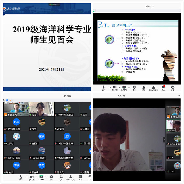 2020年7月21日下午,海洋科学学院海洋科学专业利用腾讯会议召开了2019级专业师生见面会。海洋科学专业所有教师、2019级全体学生以及2018级优秀学生代表参加了本次线上师生见面会。
