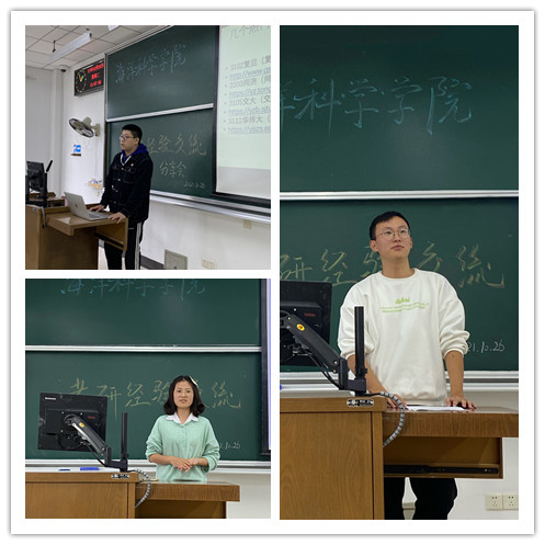 为了进一步提高我院学生的考研热情,明确考研目标,掌握复习备考技巧,了解更多考研资讯和相关政策。2021年10月26日,海洋科学学院举办2022届本科毕业生考研经验交流会。此次交流会邀请到吴佳怿、陆冬琦和刘雨3位在2021年考研中取得优异成绩的学长学姐作为分享嘉宾,现场近40位准备考研的毕业生积极报名参加。
