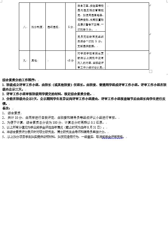 (三)凡在本学年中受到各类处分及通报批评、学术研究有弄虚作假行为等其他情况等。