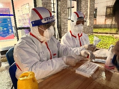 作为学生党员,当得知小区人手紧缺,急需志愿者辅助核酸检测时,张卓澜第一时间主动联系了石张东书记进行报名,成为了一名“大白”。在志愿服务中,她活跃在一线,积极帮助老师和阿姨们穿戴防护服,并对相关人员和环境进行消杀。从中午到傍晚,她在医护人员的指导下,认真配合李莹春老师的核酸检测工作,和老师、同学们在风雨中共同圆满完成任务。在这次志愿活动中,她体会到了大白的不易和老师、保安、阿姨们的艰辛。她说“在这特殊的时刻,我们更加要坚定信心,同舟共济,共克时艰。”