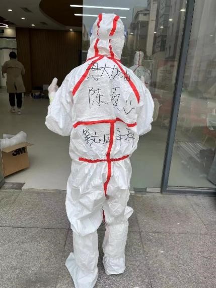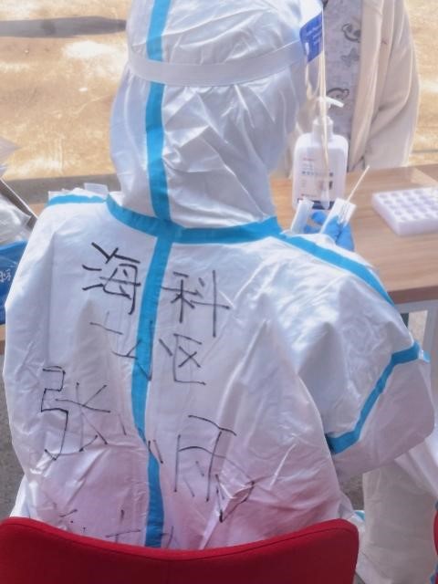 我很荣幸能够成为这次参与学校日常核酸检测工作的志愿者,为学校疫情防控尽自己的微薄之力。在这穿上防护服的半天时间里,我才真正深切体会到防疫工作人员的不易——无数次的消杀、机械性重复的核酸工作、密不透风的防护服……但即使再艰辛也没人对此有一句怨言,大家都在为了最终的胜利默默坚持着。