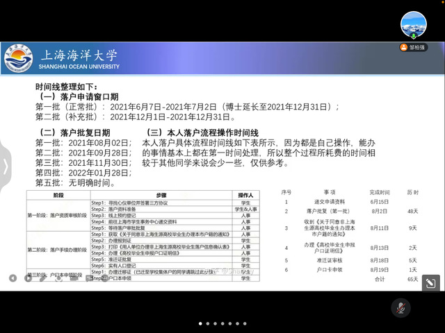 本次分享会的主讲人是18级渔业发展专业的曹金程同学,他于21年成功上岸上海事业编制,目前在上海市浦东新区自然规划局五所工作;及18级捕捞学专业的邹柏强同学,他于21年成功申请上海户口,目前在临港工作。