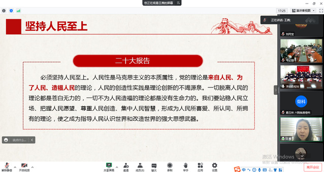 最后,海洋科学学院陈新军、石张东和李纲分别做了学习分享。陈新军表示,人民至上的理念贯穿了二十大报告始终,作为一名基层科学研究者和教育工作者,他将一方面做好渔业研究,为广大群众提供更多的优质蛋白;另一方面培养更多优秀远洋渔业人才,为国家远洋渔业强国做出贡献。李纲就基层教育工作者“为谁培养人、培养什么样的人、怎样培养人”做了分享。石张东最后表示,二十大报告给他印象最深的就是教育、科技、人才被放到了一个独立的版块,这给我们基层教育工作者注入了更多的信心。他号召大家在新时代以更加昂扬的斗志守好国门、治病救人、教书育人,以更加深入的合作推动党的二十大精神在基层走深走实。