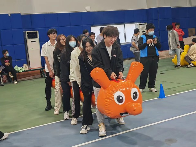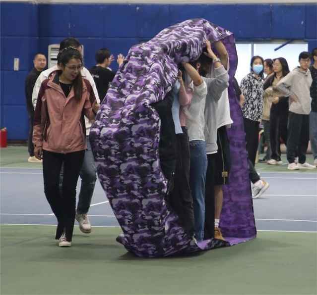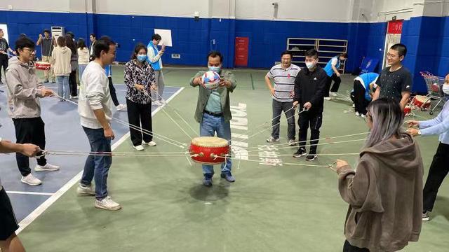 在“旱地龙舟”项目中,老师和同学们“乘坐”旱地龙舟,全体人员协调一致,向终点冲去,充分彰显团队协作的重要性。“车轮滚滚”的项目比赛中,师生组成一个巨大的“车轮”。各团队在成员们的呼喊声中展开较量,考验的不仅是速度,还有“车轮”滚动的默契。“心心相印”项目短短的路程体现了师生之间的齐心协力。最后的“鼓动人心”项目在本次比赛中难度最大。师生们团结努力为团队争取胜利,欢声笑语回荡在整个体育馆中。