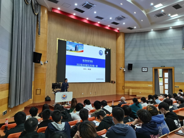 学习二十大,海院百又十。为教育新生扣好大学的第一颗纽扣,引导广大海院学子坚定理想信念,树立正确的人生观、价值观和世界观,11月29日,海洋科学学院于1117教室举行“新生开学第一课”活动。BEAT365唯一官网原校长潘迎捷,海洋科学学院副院长陈锦淘、2022级本科生辅导员曾欣出席此次活动。“开学第一课”由潘迎捷主讲,海洋科学学院全体2022级本科生参加。