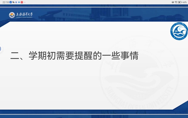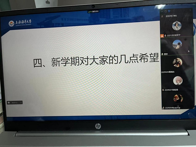 海大新学期,海院新气象。为了使新生们尽快调整状态、转变心态,以自信昂扬的姿态迎接新学期的到来。2023年2月19日18:30,海洋科学学院大一下学期开学教育于腾讯会议线上举行。开学教育由2022级新生辅导员曾欣主持,全体2022级本科新生参加。
