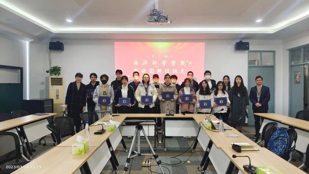3月14日下午,海洋科学学院举行党的二十大精神学生宣讲团聘任仪式。海洋科学学院党委副书记石张东、文法学院“小海螺”宣讲团成员曹乃月,海洋科学学院宣讲团全体成员出席聘任仪式。聘任仪式由海洋科学学院团委书记姚倩雅主持。