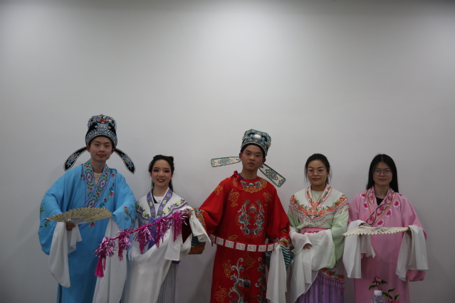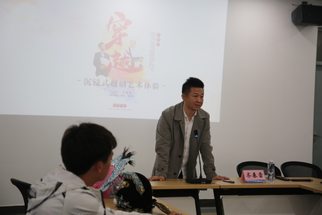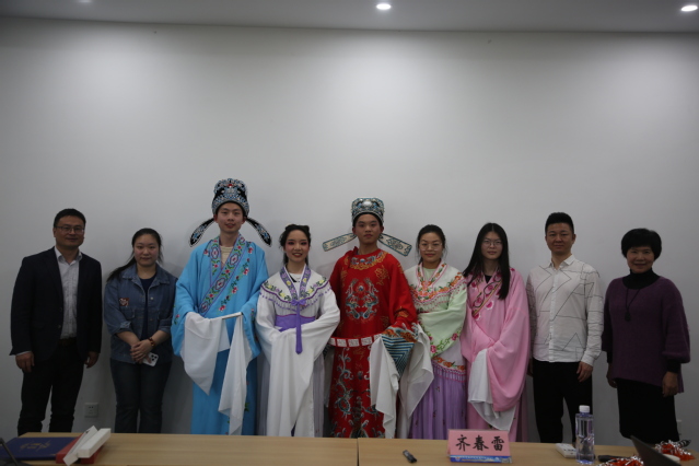 越剧是中国第二大剧种,历史悠久、底蕴深厚,齐春雷先生不急于在一时之间向同学们“灌输”枯燥复杂的乐曲知识,而是选择邀请同学们上台穿上戏服,摇身一变“状元郎”“祝英台”,亲自“摇白骨扇”“挥马儿鞭”。同学和老师们被齐先生平易近人、风趣幽默的言传身教所打动,都沉浸在丰富多彩的越剧文化中,会议室满载欢声笑语。