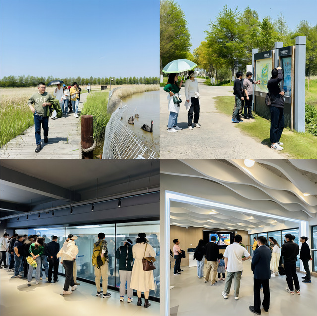 在上海东滩湿地,党员同志们先后来到了扬子鳄科普馆、科研馆和扬子鳄区进行学习和调研。通过调研,党员们了解到了东滩湿地在长江河口湿地生态系统和迁徙物种保育中的作用,以及在提升公众的湿地保护意识和生态文明意识中的作用。