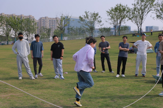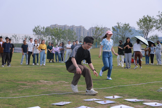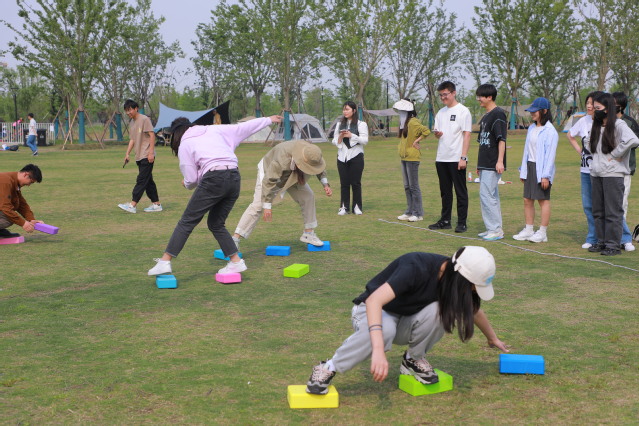 改革开放,实现了中华民族由不断衰落到从根本上扭转命运、持续走向繁荣富强的伟大飞跃。接下来的第二个游戏“摸着石头过河”中,每组的同学们需要依次使用三块“过河石”全部到达“富裕的彼岸”,途中不能落入河中。在过河的途中,成员们双脚只能踩到仅有的三块过河石上,若重心不稳,便只能落入河中。但这些远不如当时的先辈们肩负着为中国人民获得解放和幸福、为中华民族摆脱衰亡走向复兴的历史使命,他们探索着发展的道路,摸着石头过河,无论这条道路是多么艰险,都始终一往无前,才有了如今的新中国。