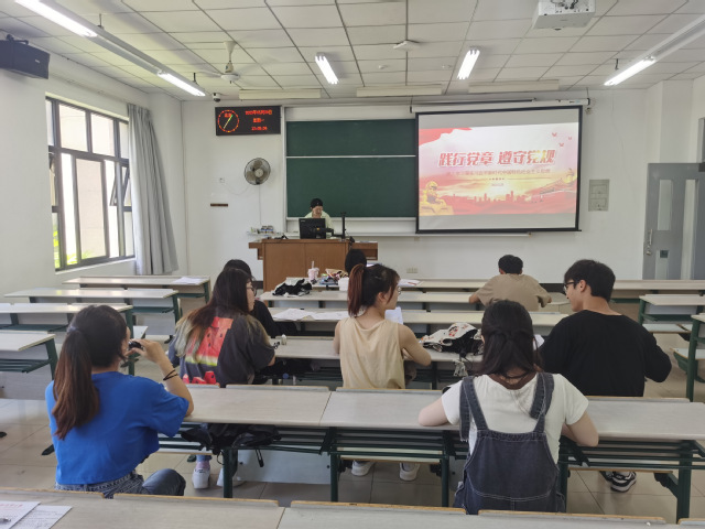 活动伊始,主持人首先向全体党员宣读了中共中央关于加强党风廉政建设的决定,重申了党员的责任和义务。随后,主持人在加强教育引导,推动党员干部遵党章、守党规、做表率方面提出了对党员的几点要求,强调党员干部要时刻保持党性,牢记党的宗旨,积极履行党员的责任和义务。她强调了党员干部应该发挥表率作用,模范遵守党章党规,做到言行一致,以身作则,为广大同学树立榜样。同时,支部成员就如何多方面、全方位、高效率的开展践行党章、遵守党规主题学习展开热烈讨论。