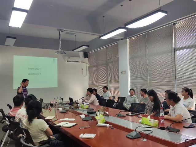 随后,黄海峰校友就自身的研究领域向老师和同学们进行了分享与交流。他提到:在他所研究的领域中,使用多线程可以达到更好的资源利用,但是同时多线程会导致资源竞争,使全局变量出现混乱,为此他提出了一些可行的方法对出现的问题进行解决。