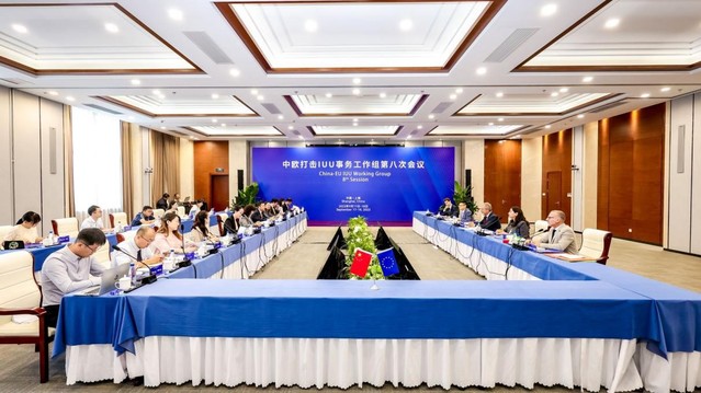 中欧双方围绕第七次会议后有关举措落实情况、《渔业法》修订进展、《港口国措施协定》进展、远洋渔业管理、公海转载、远洋渔船发展状况(渔船规模)、渔业政策更新、欧盟IUU对话和进展、捕捞认证IT CATCH 进展、欧盟合法性认证法案、中欧打击IUU政策的发展及执行、执行欧盟捕捞认证情况、执法措施(包括RFMO近期案件)等议题进行了广泛而深入的交流和研讨。