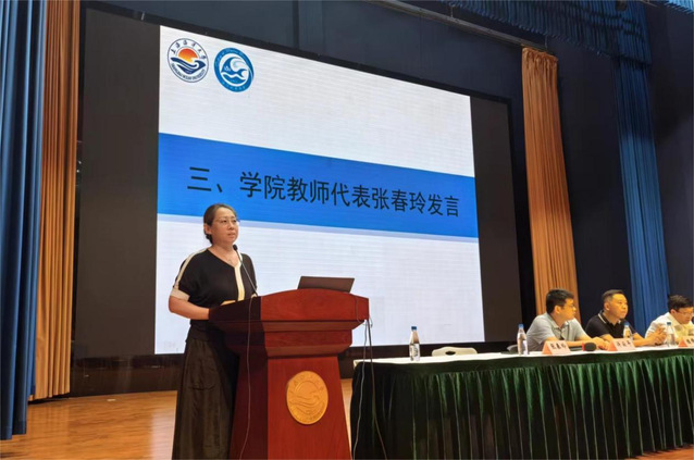 张春玲副教授作为教师代表寄语新生。张春玲老师讲述了专属于“海院大家庭”的特色与温暖,寄语新生要沉下心、主动积极的了解所学内容,培养科学素养。