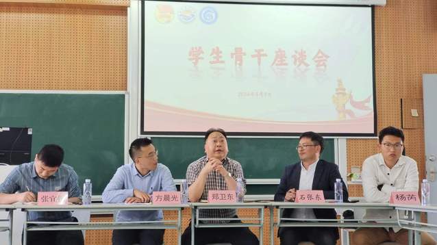 会议伊始,郑卫东与主要学生干部进行了座谈交流。来自团委、学生会、易班等各类学生组织代表依次交流发言,就繁荣校园文化、丰富学生活动等方面优秀的做法及存在的问题进行了汇报。郑卫东首先对学生组织的工作表示肯定,紧接着从学生骨干个人成长、风采展示、职业规划等方面向同学娓娓道来。他强调,学生骨干要起到学校、学院和同学们的桥梁、纽带作业,发挥好主观能动性,做好学校学风建设的参与者、做到校园文化氛围的营造者,传递青年声音、讲好青年故事,并向学生骨干提出三点要求: