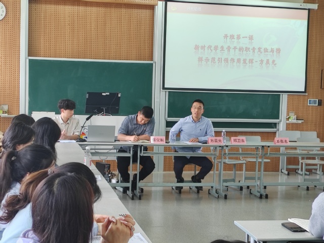 随后,石张东宣布青马工程正式开班,并做了学院发展建设主题报告。他强调,学院学生干部应提升自身综合素养,发挥组织引领性作用,团结各类组织力量,多听同学建议,增强自身才干。同时,他也对青马工程提出了期望,希望学员们能够发挥模范带头作用,为学院的发展贡献力量。